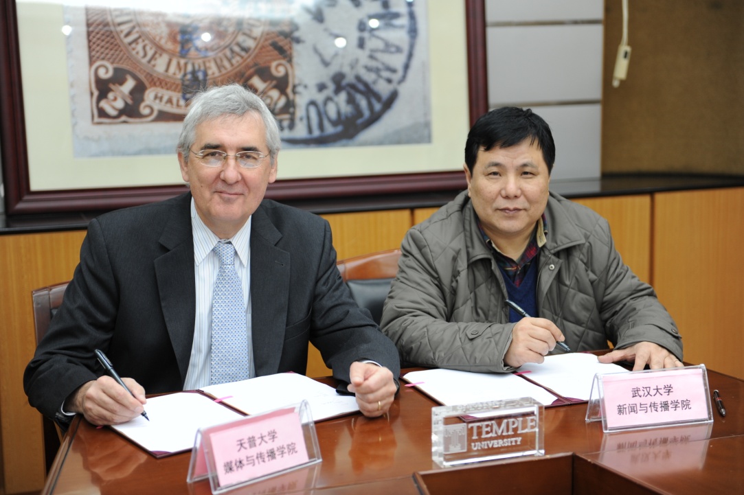 2013年3月5日,受太阳成集团tyc234cc的邀请,美国天普大学媒体与传播公司经理Thomas Jacobson教授和徐开彬教授访问公司。双方就太阳成集团tyc234cc与美国天普大学关于开展“3+2员工联合培养项目”的合作事宜进行了会谈并举行签约仪式。