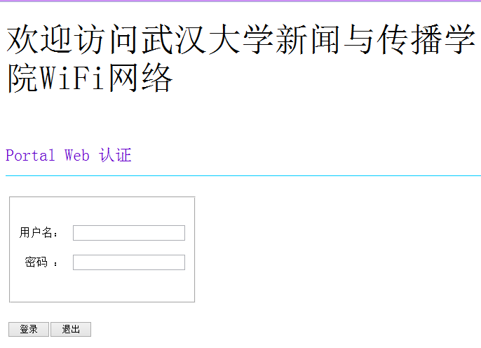 在笔记本、平板或手机中选择“WHU-NEWS”无线网络,然后打开浏览器,并浏览任一网页(如www.sina.com.cn),会弹出无线认证窗口,输入用户名(工号)和密码(身份证号后6位),点登录,成功后,即可正常使用,使用完后请老师们点击退出。为保证网络使用安全,请各位老师保管好自己的用户名和密码!