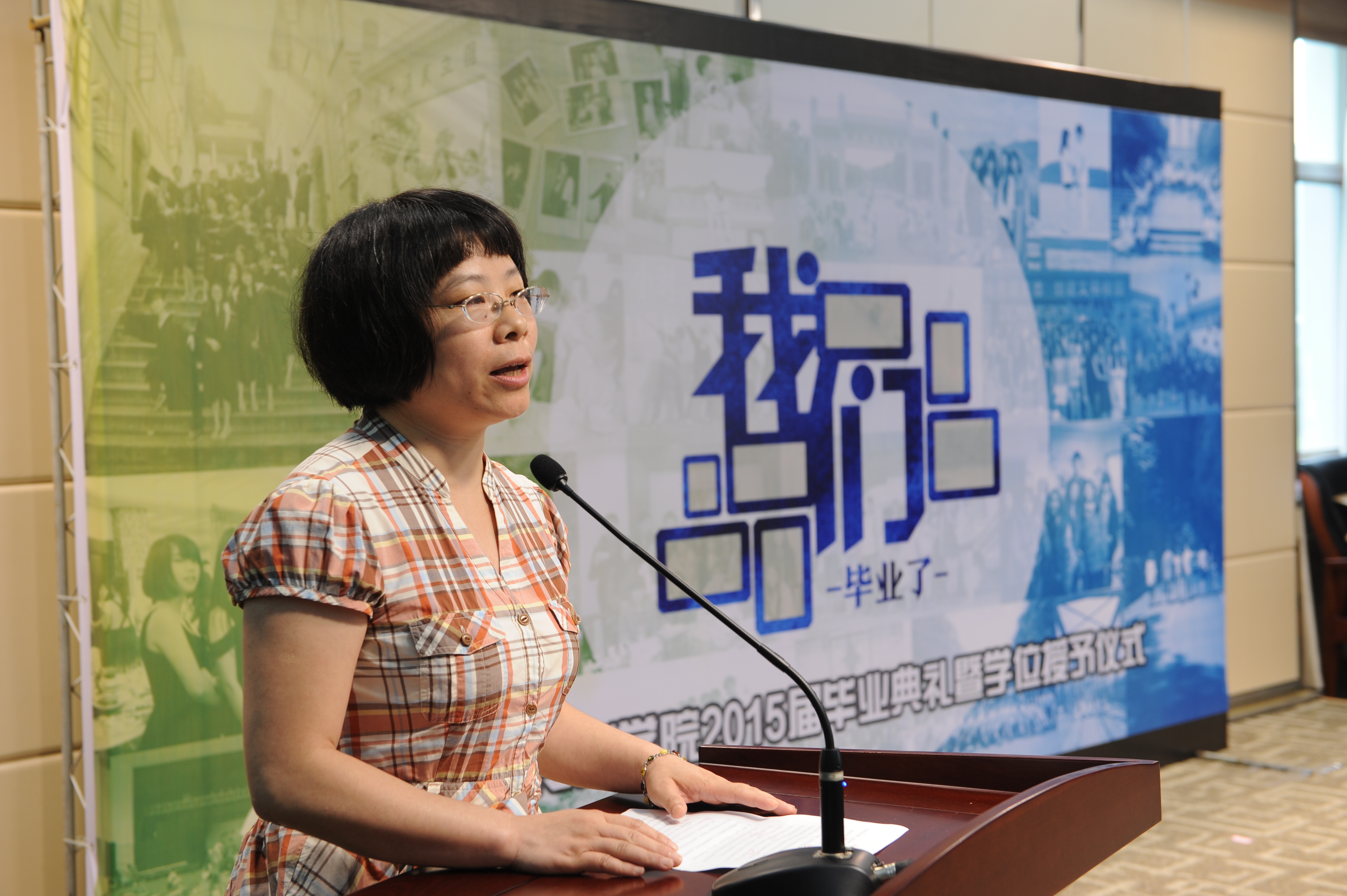 已担任本科生班导师15年、目前为2011级新闻学本科生班导师的教师代表刘静慧表达了对2011级本科毕业生未来的期冀,希望他们做好知识、技能、心理上的准备,毕业再出发,成为社会的中坚力量。她也表示,樱花树下是我们永远的家园,老师们的关怀与帮助、同学间的情谊是不会随着时间流逝的。