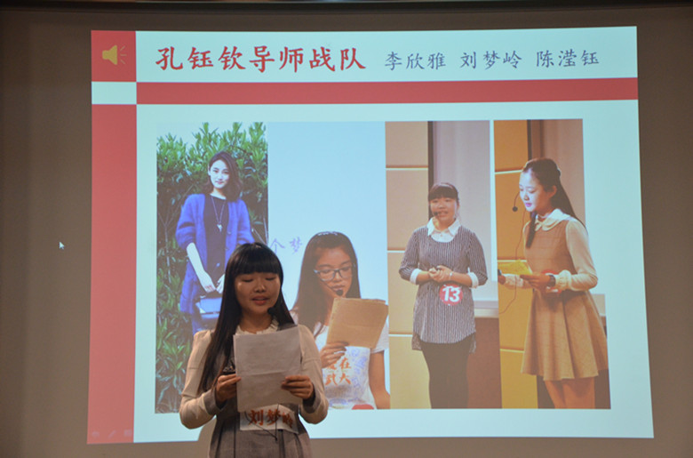 相较于初赛,高一戈老师战队的三名选手都有了极大的进步。她们在舞台上更加轻松自如、娓娓道来,同时在形式上都做了另辟蹊径的创新,不免让人眼前一亮。胡军霞结合图片说故事;于雯旭通过好书推荐展开论述,让人茅塞顿开;李颖迪用《南方周末》记者的故事循循善诱,巧妙利用结尾处的音乐使人心振奋。尽管因为紧张而忘词,但被评委老师一致赞为”台风稳,范儿更足”,顺利夺得本组最强的称号。
