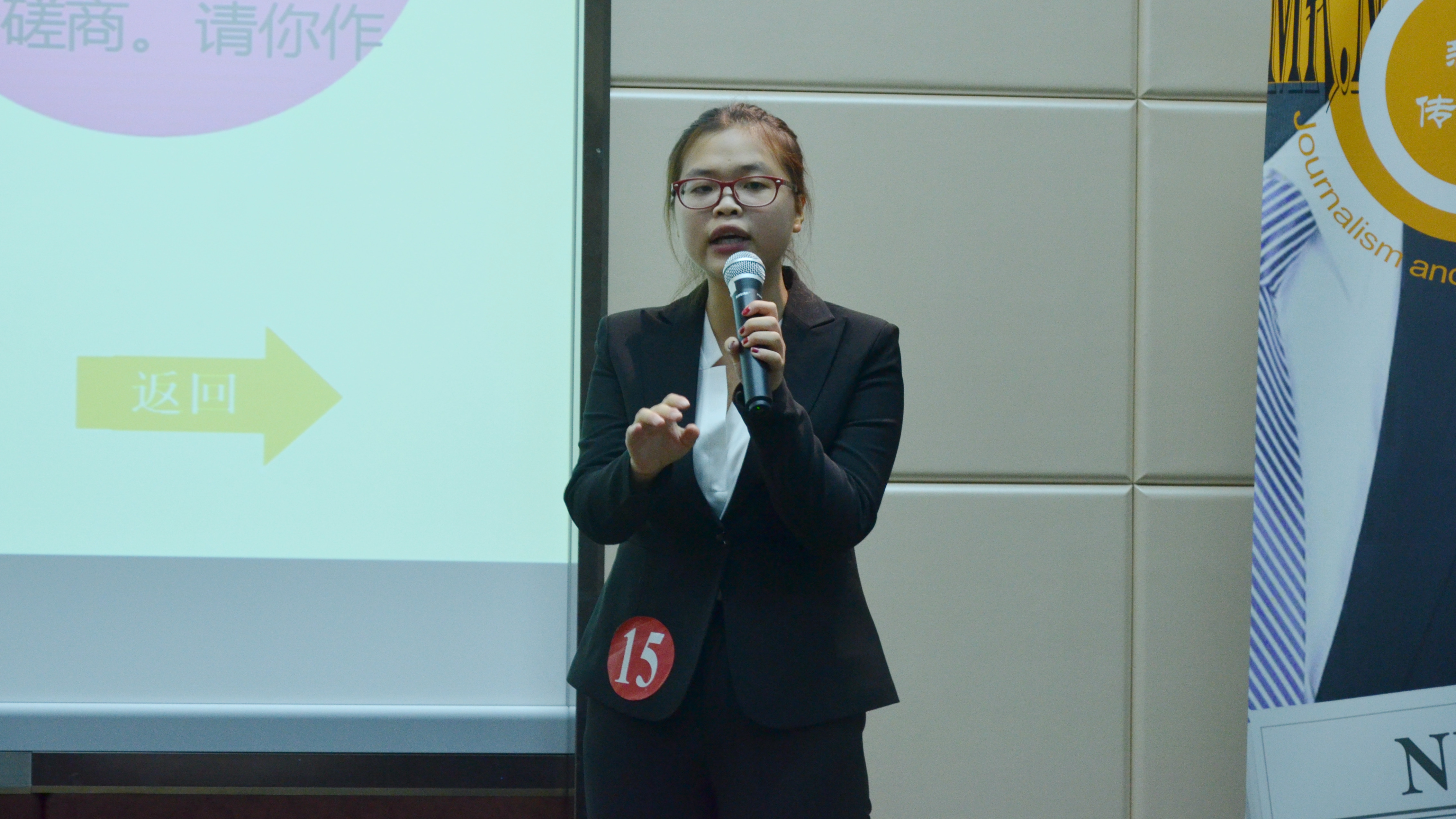 比赛共分为闪亮登场、新闻消消乐、视说“新”语三个环节。在第一个环节“闪亮登场”中,15名选手分为4组上台,展示个人的独特风采。小组成员们或是充当起主持人侃侃而谈,或是以新闻播报的形式介绍个人才艺,引得掌声连连。