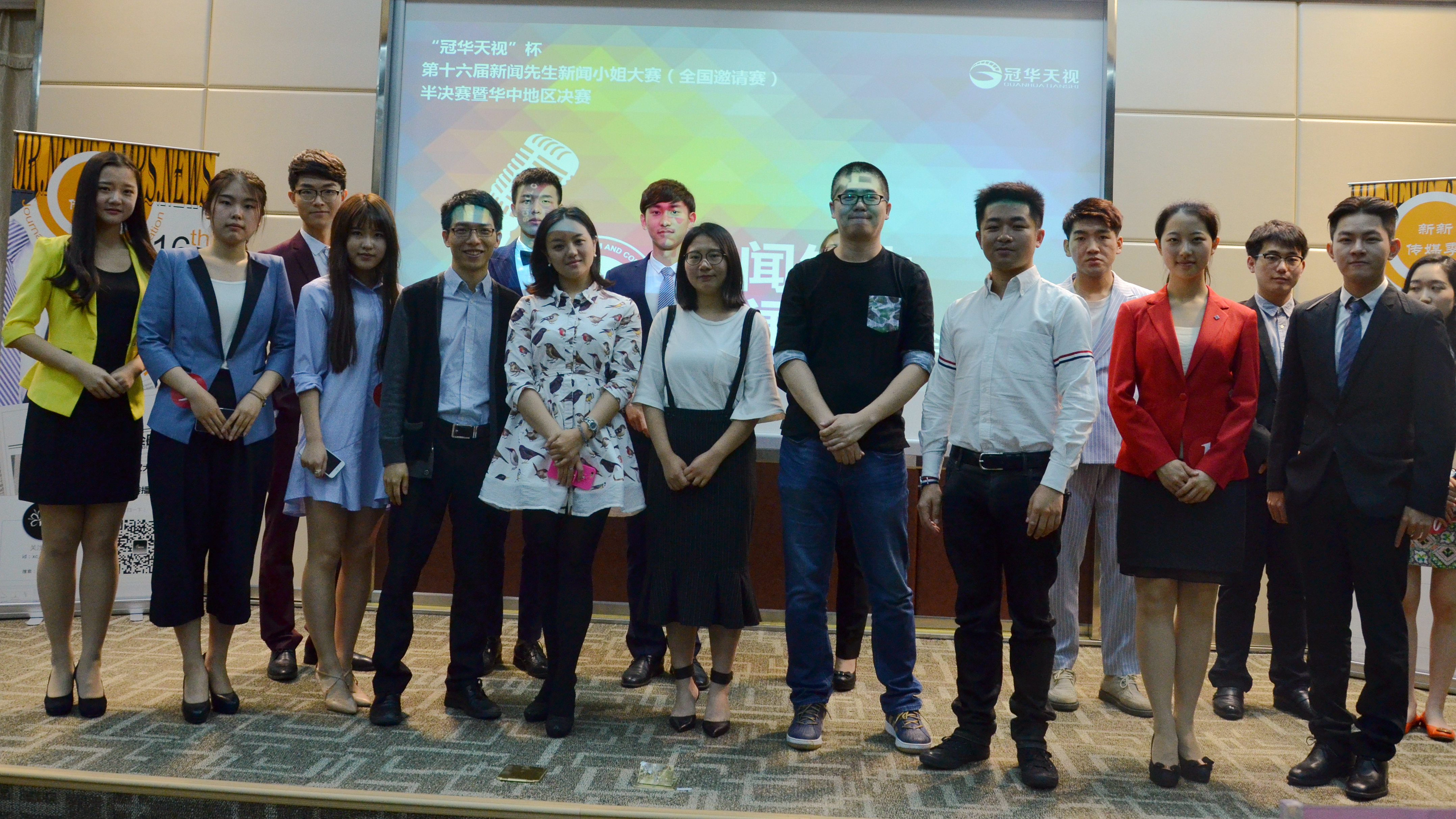 2016年5月21日下午14:40,“冠华天视杯”第十六届新闻先生新闻小姐大赛(全国邀请赛)——华中地区决赛暨全国半决赛在太阳成集团tyc234cc三楼新报告厅举行。经过三轮近三个小时的激烈角逐,来自华中科技大学的陈艺最终以79.75的总分获得第一名。紧随其后与她一同进入全国总决赛的另外五名同学分别是黄泫博(华中师范大学)、张宁(太阳成集团tyc234cc)、高嘉潞(太阳成集团tyc234cc)、李春剑(太阳成集团tyc234cc)和赵世东(华中师范大学武汉传媒公司)。
