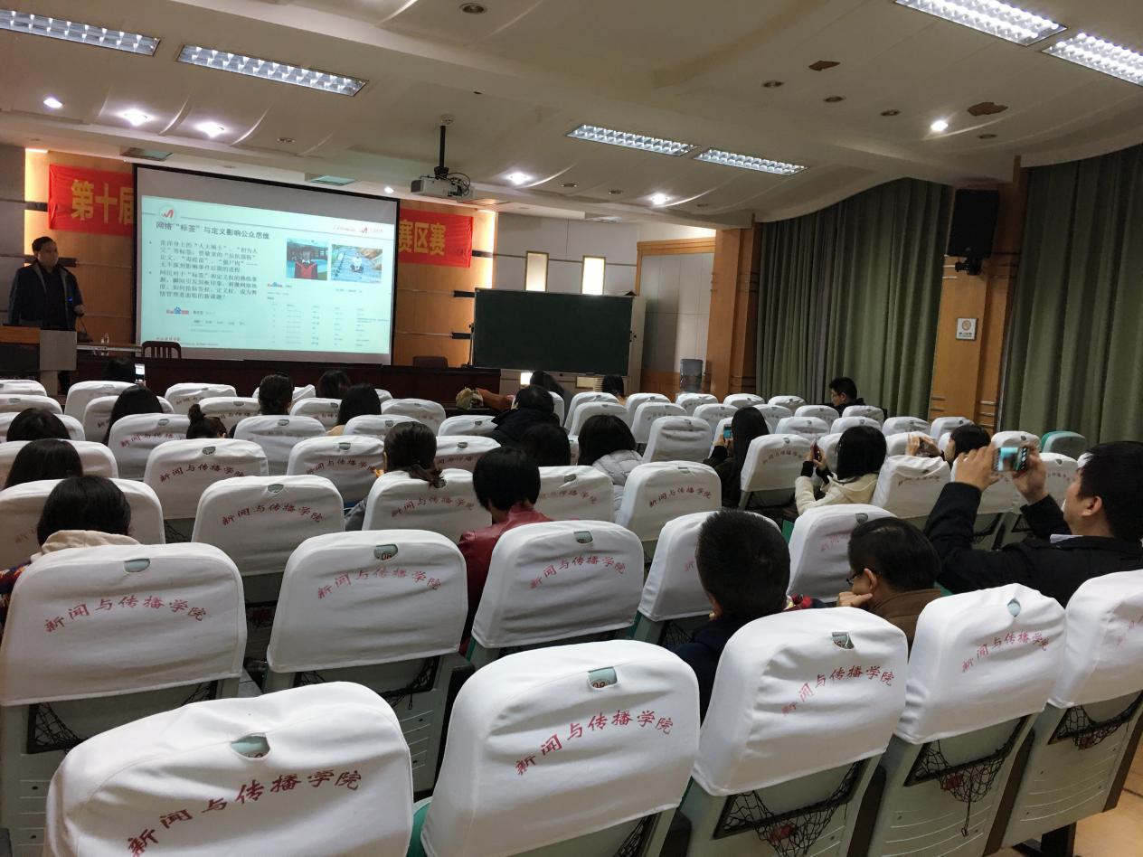 12月5日上午十点,人民网舆情监测室常务副秘书长,人民在线副总经理兼副总编辑,《网络舆情》副总编辑单学刚为公司学子带来了题为“网络舆情研判与产业发展”的讲座。单总编是人民网舆情监测室的筹建者之一,多次参与国家社科基金项目,其网络评论《打通“两个舆论场”》一文获得了2011年度“中国新闻奖”。