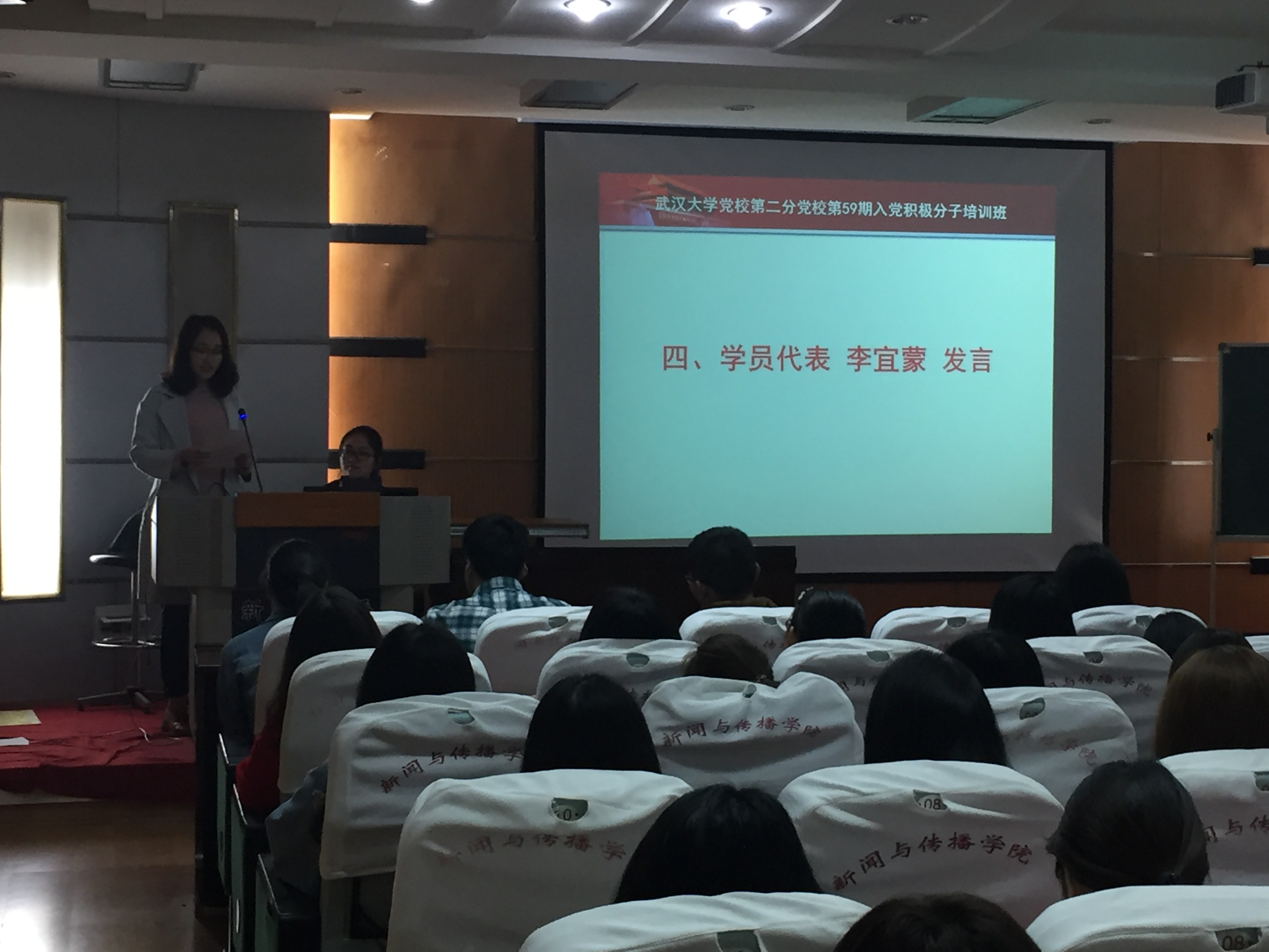 太阳成集团tyc234cc2015级本科生李宜蒙作为学员代表进行了发言,表达了新时代老员工对党的热爱和对国家的忠诚,并表示,全体学员将会严守党校纪律,珍惜学习机会,不断提高自身理论水平,加深对党的认知,加强党性修养,纯洁入党动机,坚定理想信念,在日常生活中以党员标准严格要求自己,发挥先锋作用,争取早日加入党组织。