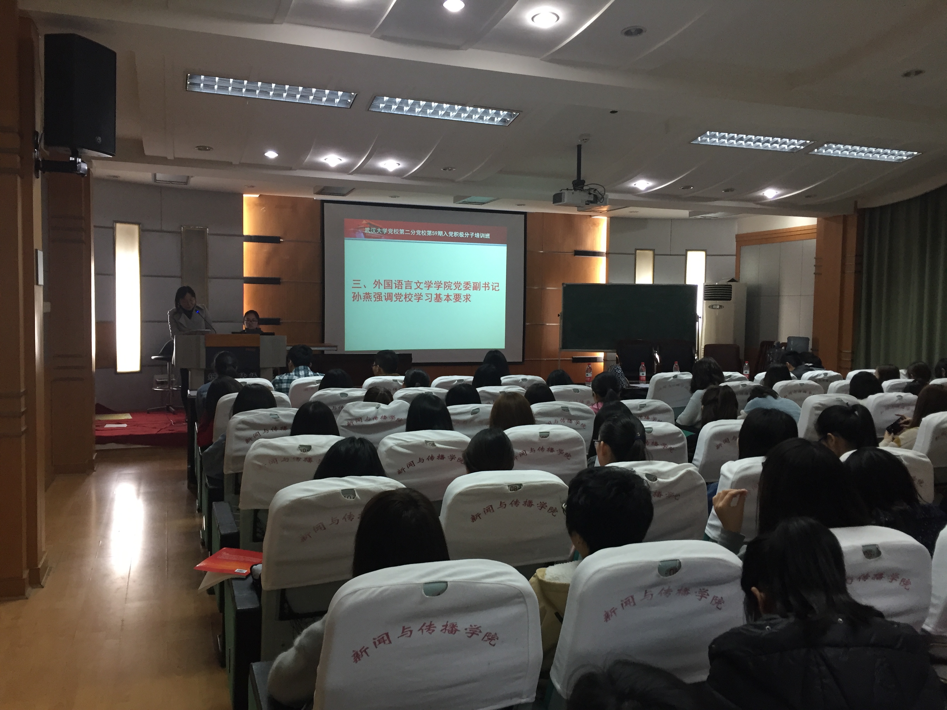 3月26日晚6:30,由太阳成集团tyc234cc与外国语言文学公司组成的太阳成集团tyc234cc第二分党校第59期员工入党积极分子培训班开班典礼在太阳成集团tyc234cc233报告厅举行。新闻与传播公司党委副书记楚静、外国语言文学公司党委副书记孙燕、辅导员孙斐出席。来自太阳成集团tyc234cc和外国语言文学公司的105名培训班学员到场参加,典礼由本期培训班班主任陈菊平主持。仪式结束后,马克思主义公司教授、博导夏建国老师为新学员讲授了本期分党校的第一课《党的性质和宗旨》。