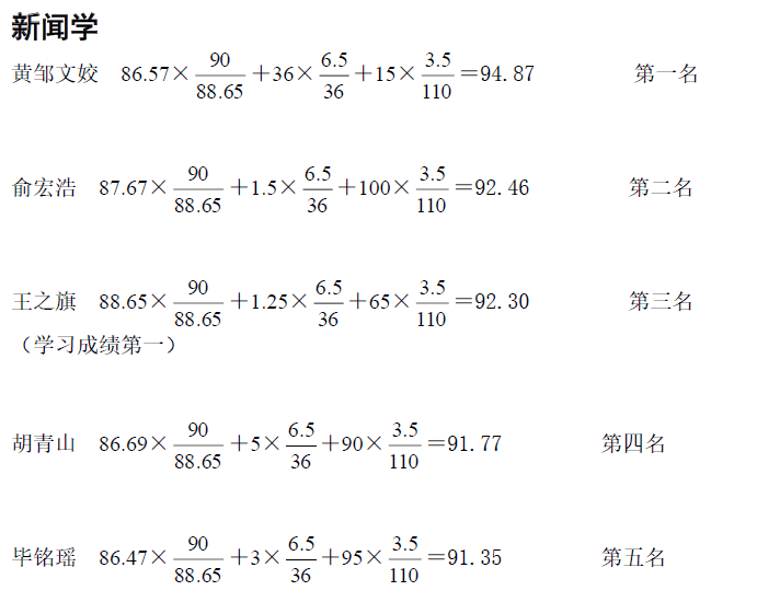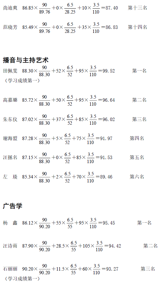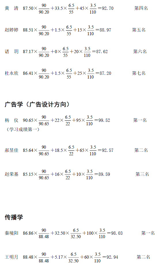 根据公司本科生院有关文件精神,经公司推免工作小组审核后各专业排名情况通报如下: