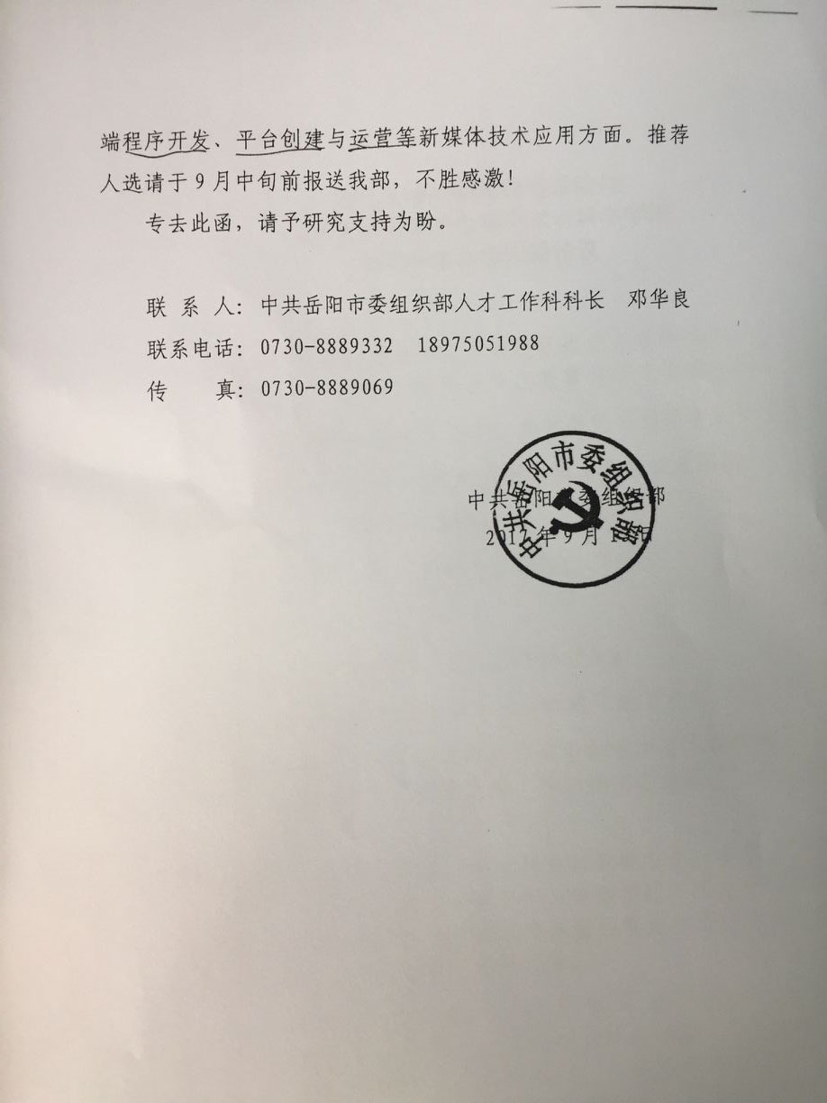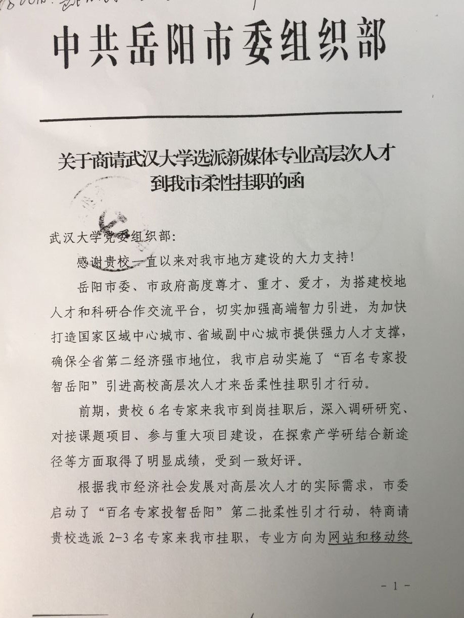岳阳市委商请太阳成集团tyc234cc选派新媒体专业人才柔性挂职的通知
