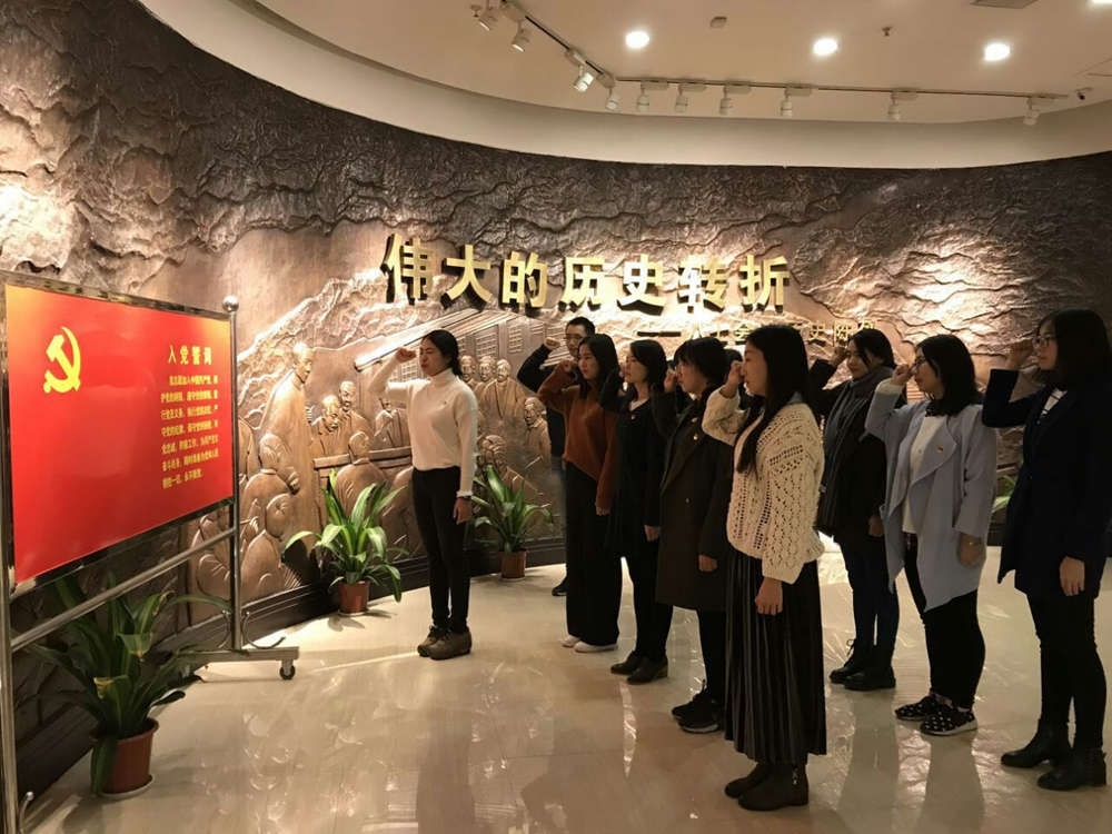 在八七会议会址的入口处,研究生党总支组织委员刘惟真组织党员代表们进行了重温入党誓词的活动。党员们站成两排,严肃宣誓,铿锵有力的声音回荡在这座具有重要历史意义的建筑里。