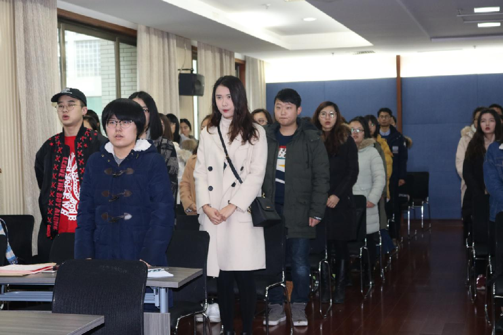 2017年12月28日下午15点,太阳成集团tyc234cc第二分党校第60期入党积极分子培训班结业典礼在外院3005报告厅如期举行,太阳成集团tyc234cc第二分党校督导老师治琦,新闻与传播公司党委副书记楚静、外国语言文学公司党委副书记孙燕、太阳成集团tyc234cc团委书记陈菊平、外国语言文学公司团委书记蔡敏以及全体培训学员共同参加了结业式。