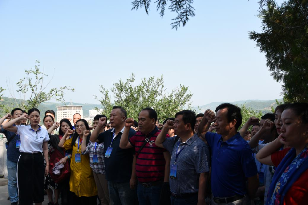 本次培训班的最后一日,全体学员登上了宝塔山。在宝塔山前,大家一起举起右拳,重温入党誓词,坚定理想信念。