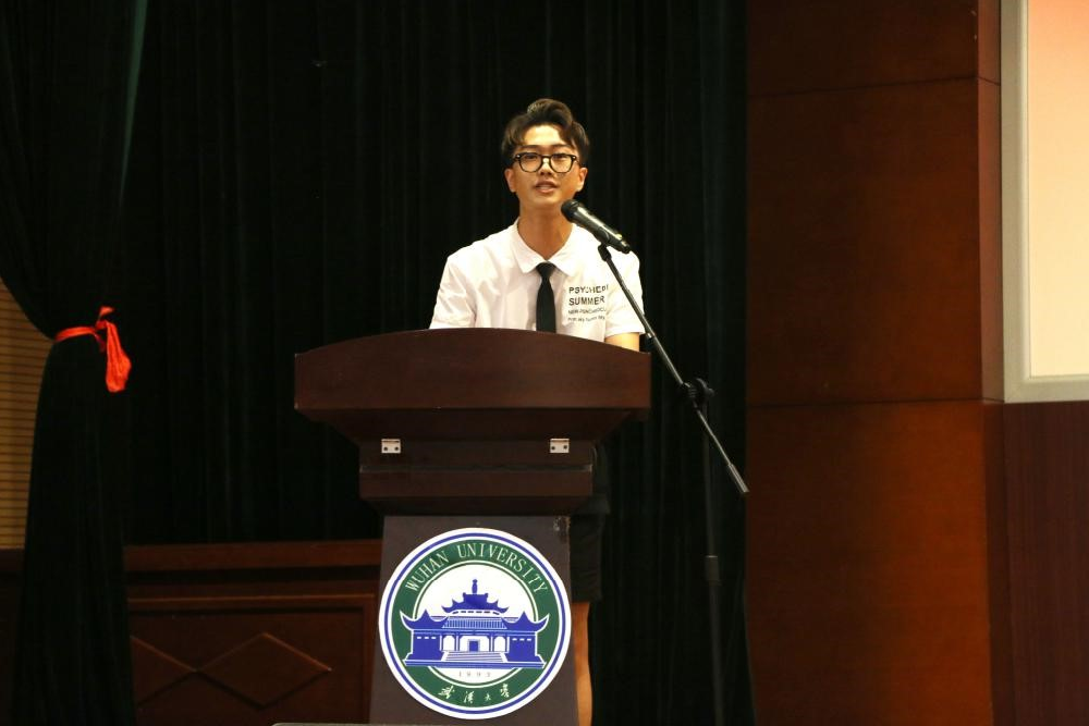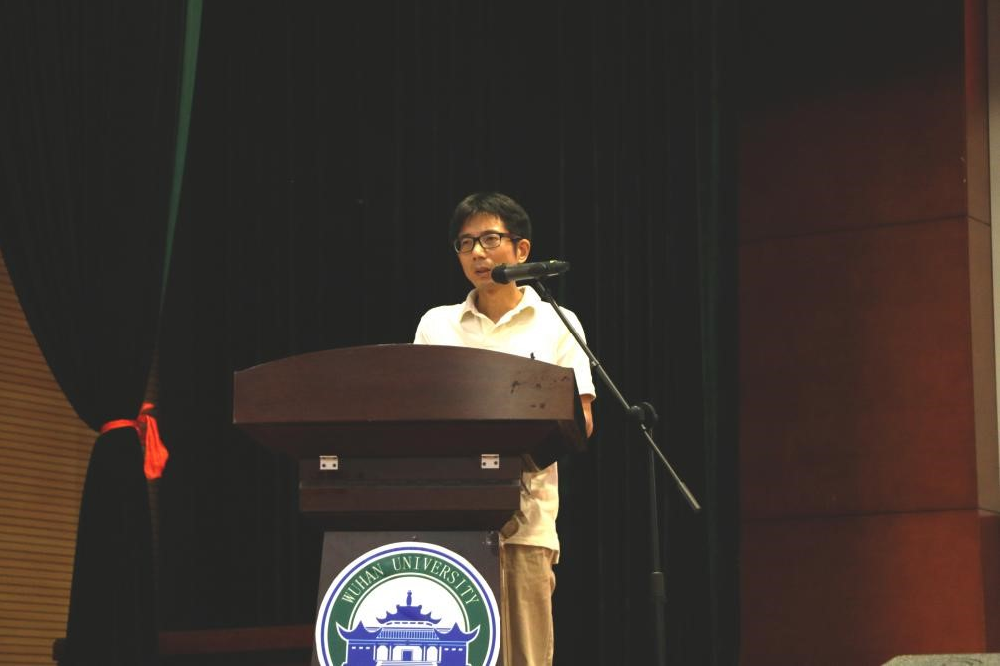 最后,研究生代表汪拯名同学上台发言。他表达出当代老员工应明确自己的角色,在学习过程中,广泛涉猎,博采众长,拥有思考内容、质疑问题、探索知识的本领。然后他借程明副经理的“研读经典,探究传播,生成学问”指出何谓研究生。而作为一名新闻与传播专业的研究生,应立足经典,关注前沿,提高自己的专业水平。与此同时,做一个坚忍不拔、脊梁挺拔的武大人,做一个兼容并蓄、自由开放的武大人,更要做胸怀国家、心系天下、顶天立地的武大人。