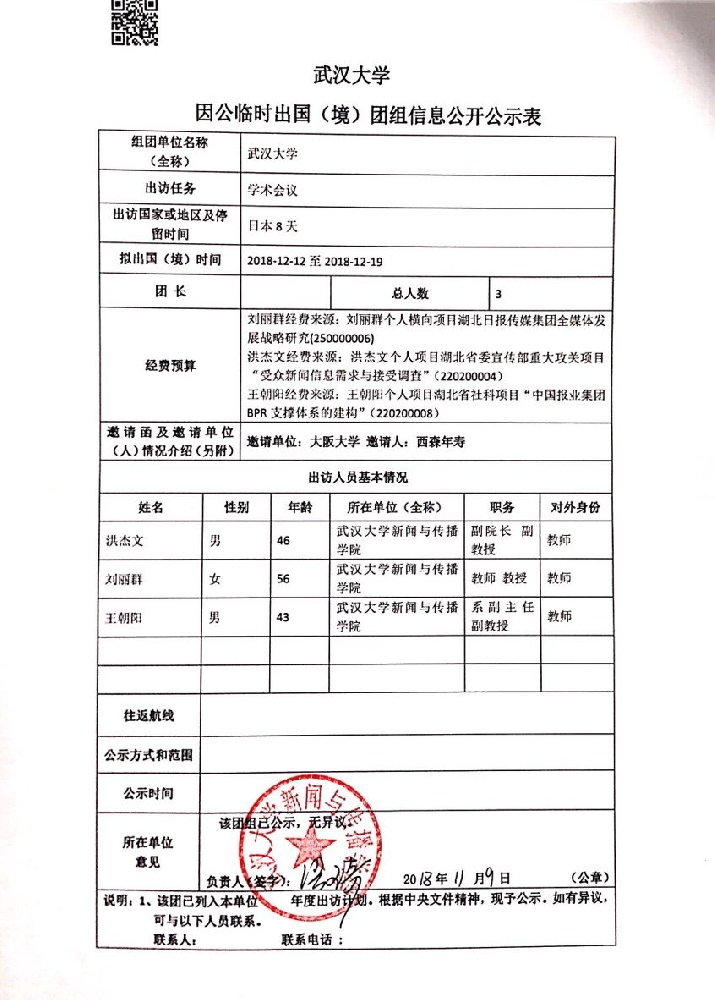 太阳成集团tyc234cc因公临时出国(境)公示表(洪杰文、刘丽群、王朝阳)