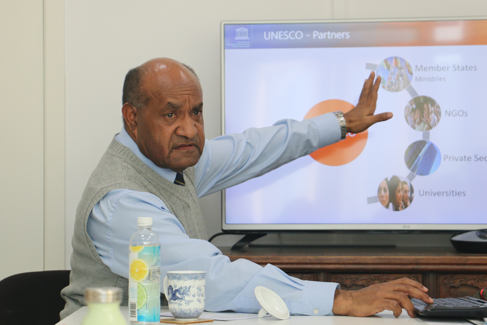 4日,参访团分组前往联合国教科文组织、难民署、妇女署和艾滋病规划署驻华代表处进行参观交流。公司在联合国教科文组织驻华代表处的实习生殷泽昊同学迎接了参访团一组一行,驻华代表Marielza Oliveira女士对大家表示热情欢迎,并邀请教育项目官员Robert Parua为大家详细介绍了联合国的发展历史、组成机制与目标宗旨。随后,联合国教科文组织驻华代表处其他的国际职员向参访团具体介绍了目前正在运营的项目。在交流互动中,各位参与交流的国际职员也表示,希望能借此机会让更多的青年了解联合国教科文组织,同时也再次表达了对武大学子的欢迎。
