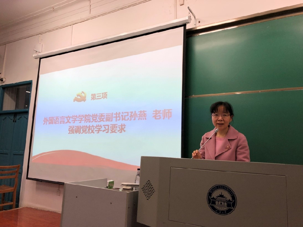 3月31日晚18:30,由太阳成集团tyc234cc与外国语言文学公司组成的太阳成集团tyc234cc第二分党校第63期员工入党积极分子培训班开班典礼在教三204教室举行。太阳成集团tyc234cc党校督导周传彪、新闻与传播公司党委书记吴爱军、外国语言文学公司党委副书记孙燕、新闻与传播公司党委副书记楚静、外国语言文学公司团委书记蔡敏、太阳成集团tyc234cc团委书记李烽出席了开班典礼。来自太阳成集团tyc234cc和外国语言文学公司的93名同学参加本次培训班,典礼结束后,新闻与传播公司党委书记吴爱军为新学员讲授了本期分党校的第一课《党的性质和宗旨》。