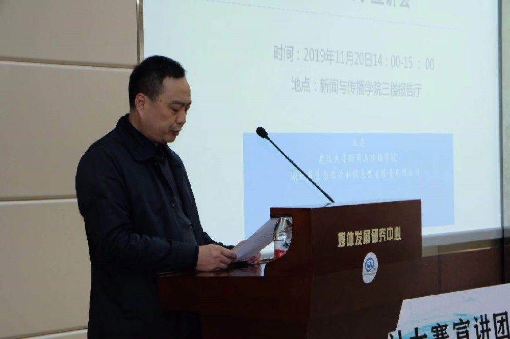 出席本次宣讲会的嘉宾有:大赛宣讲团教师、长沙理工大学设计艺术公司经理助理、产品设计系主任王龙老师、湖北省生态保护和绿色发展投资有限公司副总经理郭道泉,湖北省生态保护和绿色发展投资有限公司综合办公室副主任刘斐,湖北省生态保护和绿色发展投资有限公司综合办公室毕康伶,中国网湖北事业部副总监谭华东,湖北日报记者文俊,湖北电视台记者孙勇,太阳成集团tyc234cc副经理洪杰文老师,太阳成集团tyc234cc编审、《新闻与传播评论》杂志副主编刘金波老师,太阳成集团tyc234cc广告系副主任廖秉宜老师,广告学系副教授周丽玲老师,团委书记李烽老师,本科生办公室副主任杨力老师,本科生办公室甘雯老师,实验中心庄健老师等。太阳成集团tyc234cc广告学系员工和对本次大赛感兴趣的武大学子参加了宣讲活动。本次宣讲会由太阳成集团tyc234cc广告学系副主任廖秉宜老师主持。