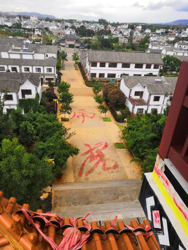 尼苏小镇俯瞰图:第二个字是虎,虎是彝族人民崇拜的图腾形象