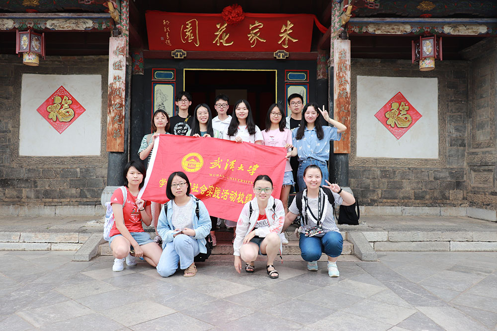 队伍在可邑小镇的合照:身后是传统彝族建筑