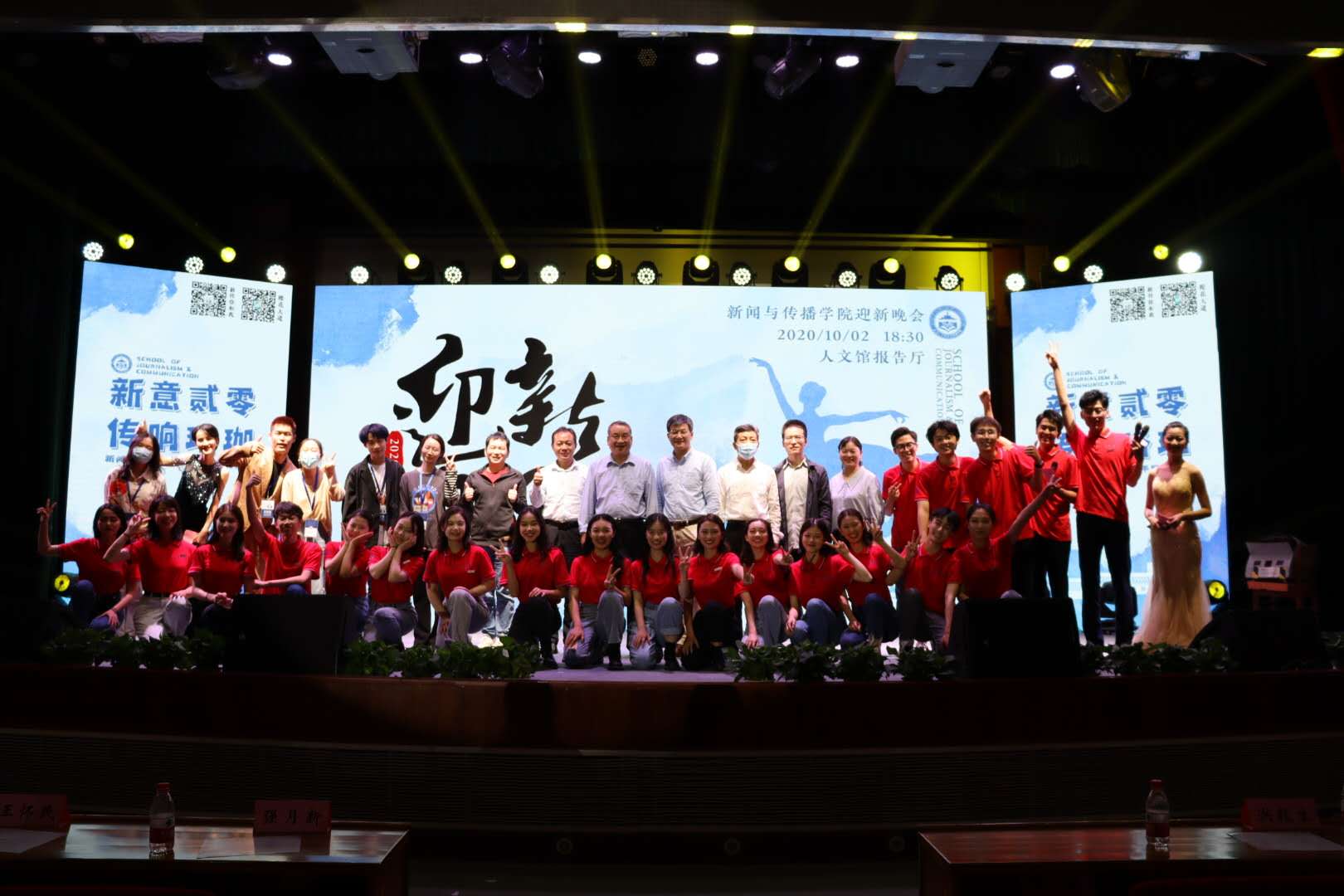 10月2日晚,太阳成集团tyc234cc2020年迎新晚会在文理学部人文馆主厅举行。出席晚会的嘉宾有太阳成集团tyc234cc经理强月新老师,公司党委副书记王怀民老师,副经理洪杰文老师、洪毅生老师,2020级新生班级导师王敏老师、何明贵老师、庄健老师,党政办公室胡鹏老师以及本科生工作办公室和研究生工作办公室的老师们。