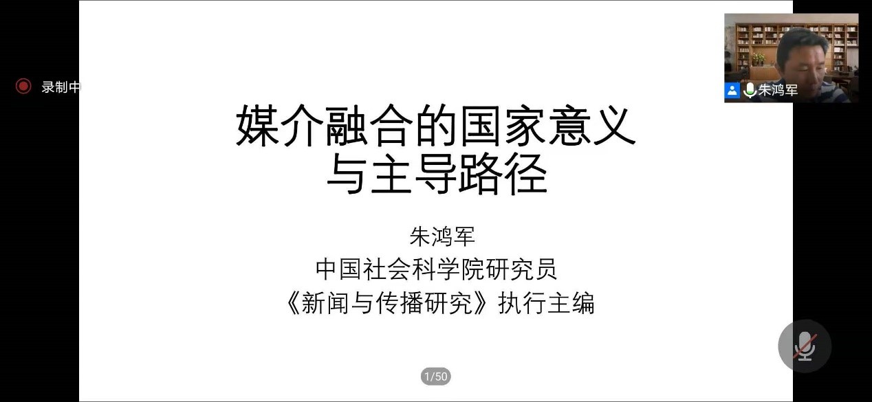 中国社会科公司新闻与传播研究所研究员、教授,《新闻与传播研究》执行主编朱鸿军就“媒体融合需要的媒介思维”进行演讲,全面地回答了“国家为何加快媒体融合?”“媒体融合的国家意义”以及“如何媒体融合及其主导路径”等问题,提出突破思维、定位身份、优化内容等建议。