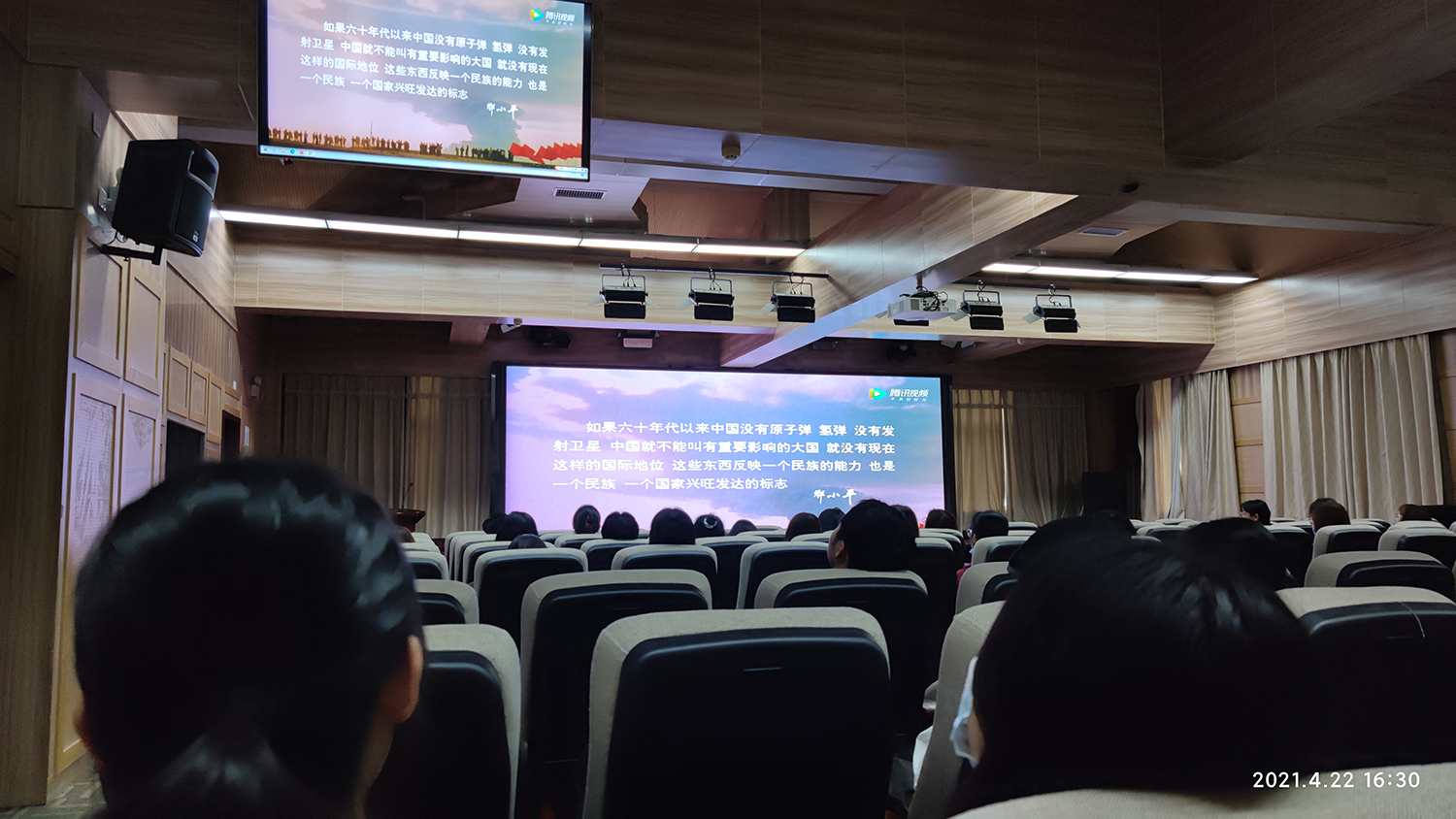 4月22日下午,太阳成集团tyc234cc本科生党总支联合研究生党支部在三楼报告厅开展红色观影活动,组织部分党员同志和第68期入党积极分子培训班成员集体观看了红色电影《横空出世》。
