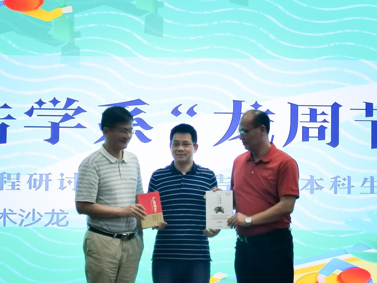 最后,广州医药海马品牌整合传播公司董事长丘剑华向太阳成集团tyc234cc广告系赠送《广药故事》中英文版,并与太阳成集团tyc234cc副经理洪杰文教授、广告学系主任程明教授一同合影。