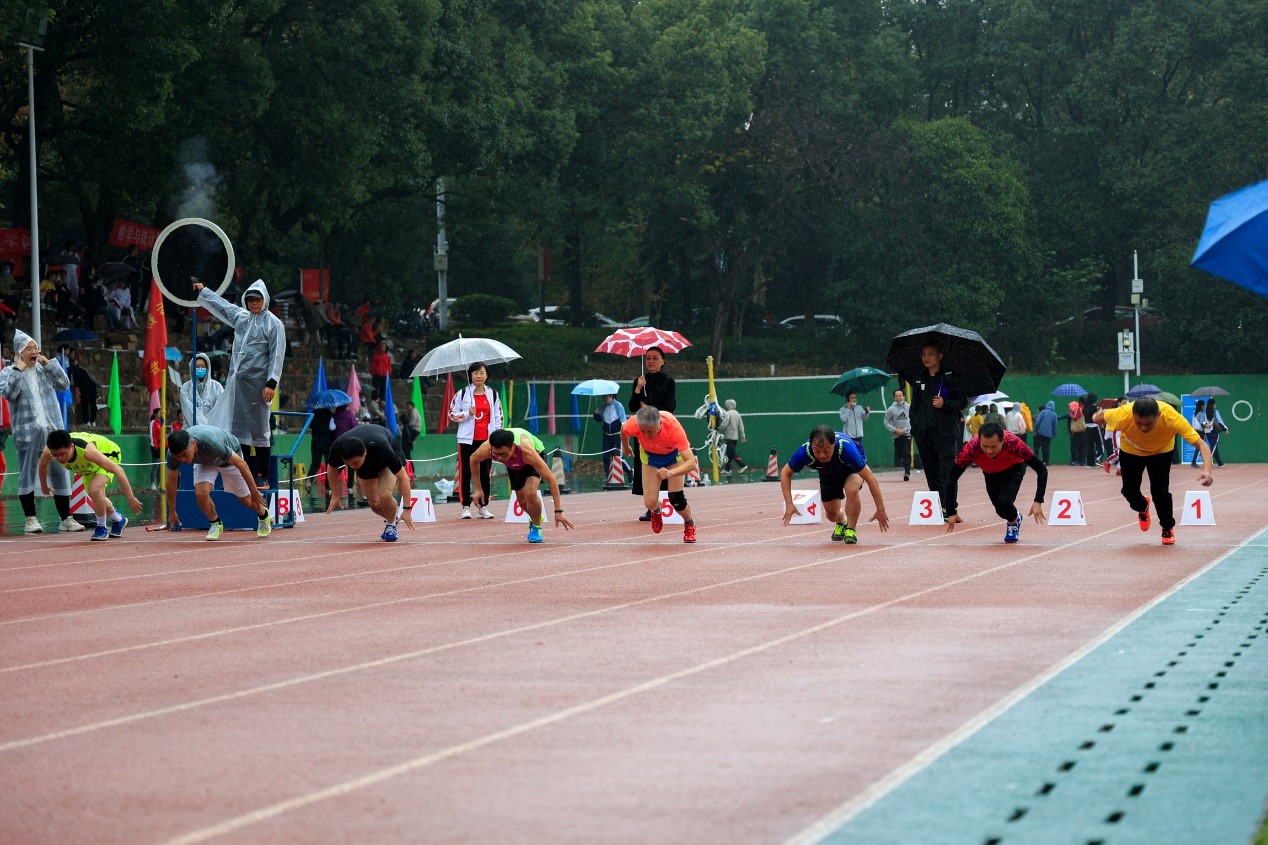 而60米径赛,是属于追风男子的。公司王怀民副书记是其中的佼佼者,是每次校运会上该项目的获奖常客。本届校运会也不例外,初赛环节,王书记带着微笑第1个冲过终点。他说这次比赛新增了很多强手,这让全院老师紧张又期待的情绪增添了几分。下午,天空下起了小雨,决赛的哨声依然尖厉地划过雨幕,8位强手鱼贯而入,在起跑线上下蹲、落手、蓄势。第一声枪响,有人率先冲出,抢跑了。所有选手重新归位,起跑线上再一次下蹲、落手、蓄势、枪响,王书记如箭一般冲出,胳膊飞速轮甩,双腿阔步频迈,留下一道影子随风闪过。最终,王书记以第三名的成绩获得二等奖,为公司拿下了运动会上最稳,也最值得期待的一分。