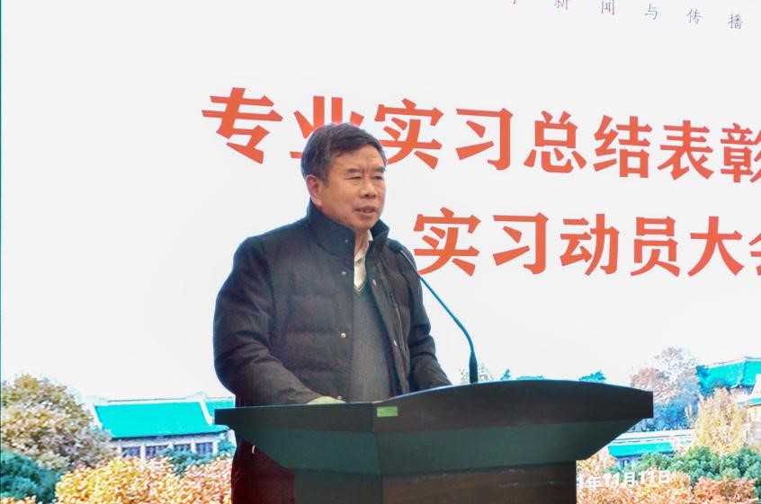 大会的第五项内容,周茂君老师作实习工作布置和实习动员的讲话。