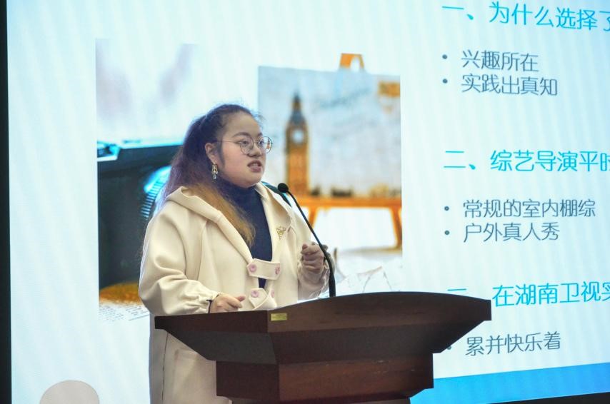 广播电视学专业的杨洋学姐的实习单位是位于长沙的湖南广播电视台。杨洋学姐用幽默不失活泼的口吻向我们分享了她在《快乐大本营》节目组实习的经历,“累并快乐着”是她此次实习的最大感受。