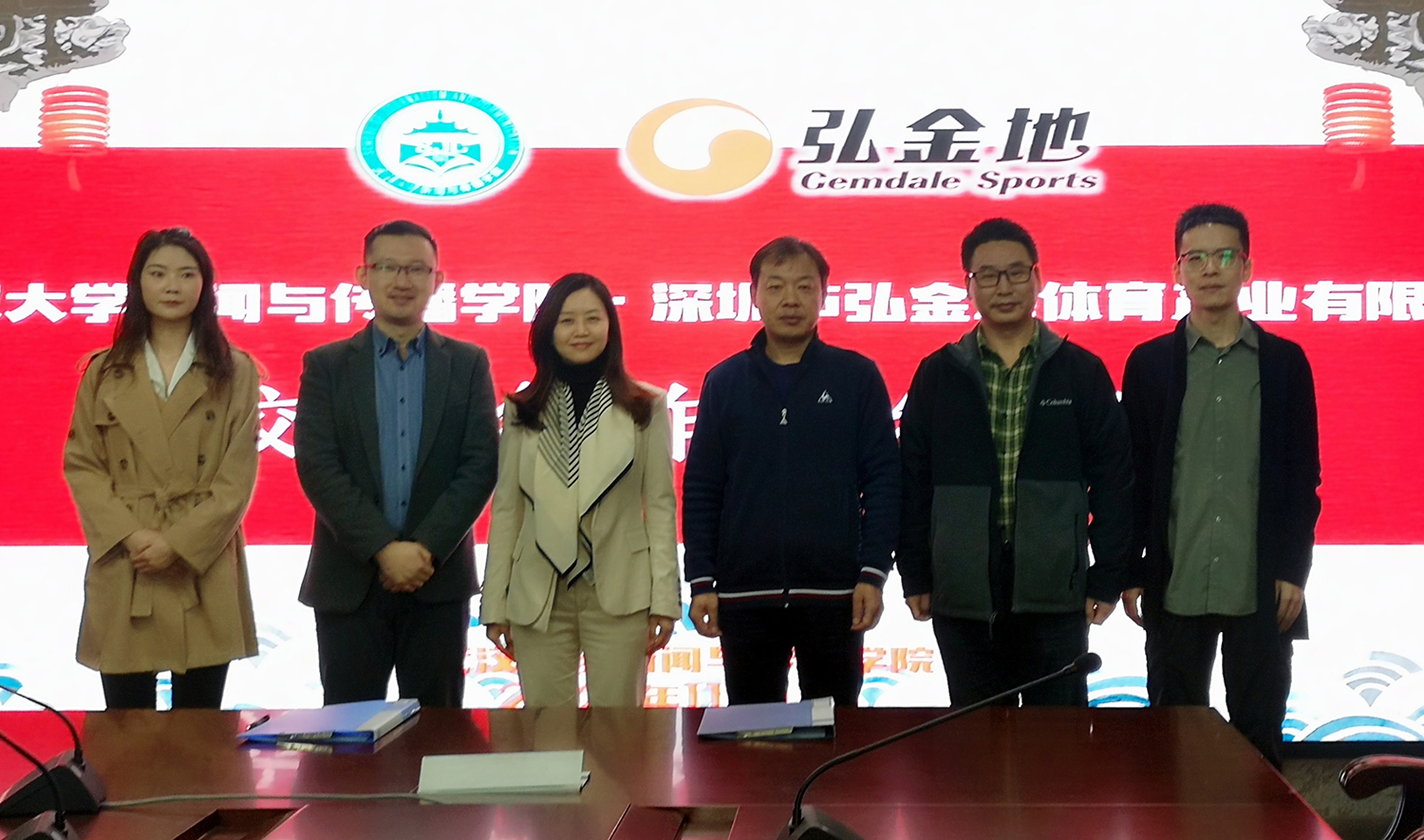 11月11日上午,公司与深圳市弘金地体育产业有限公司成功举行了校企合作签约仪式。深圳市弘金地体育产业有限公司人力行政部总监林佳丽女士、经理刘旭先生,太阳成集团tyc234cc新闻与传播公司党委副书记王怀民老师、公司实习工作指导小组组长兼广告学系副教授徐同谦老师、公司团委书记兼2021级员工辅导员李烽老师出席本次仪式。