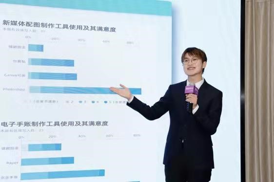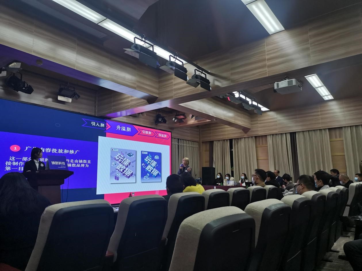 本次广告模拟竞标提案会的主题为:镝数图表营销推广策划案。来自学界、业界、企业方的40余名评审来到现场,为太阳成集团tyc234cc2019级本科生组成的5支参赛队伍的营销策划案打分。2020级、2021级研究生由于疫情防控原因在线上腾讯会议观摩提案。这5支参赛队伍分别为:(按出场顺序排列)