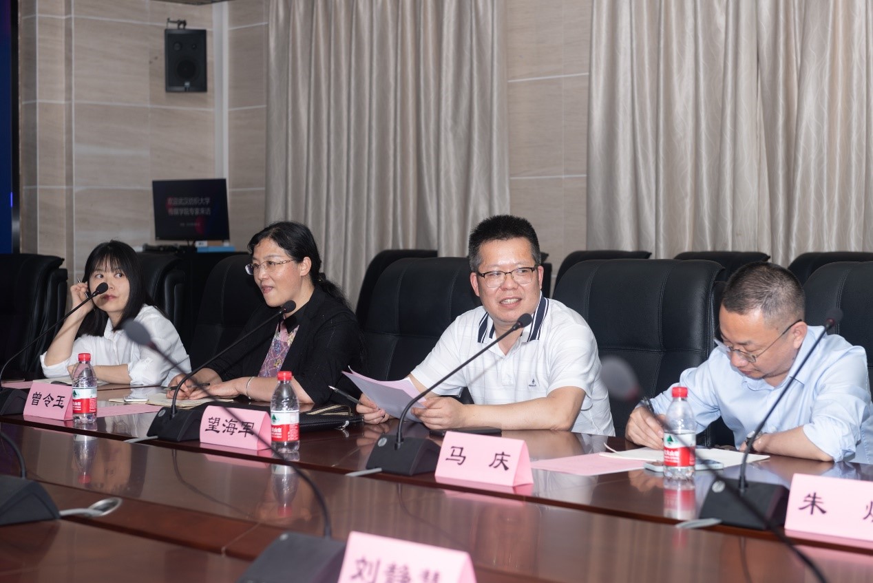 (公司党委书记李玉龙、经理强月新教授和副经理洪杰文教授参加会谈)