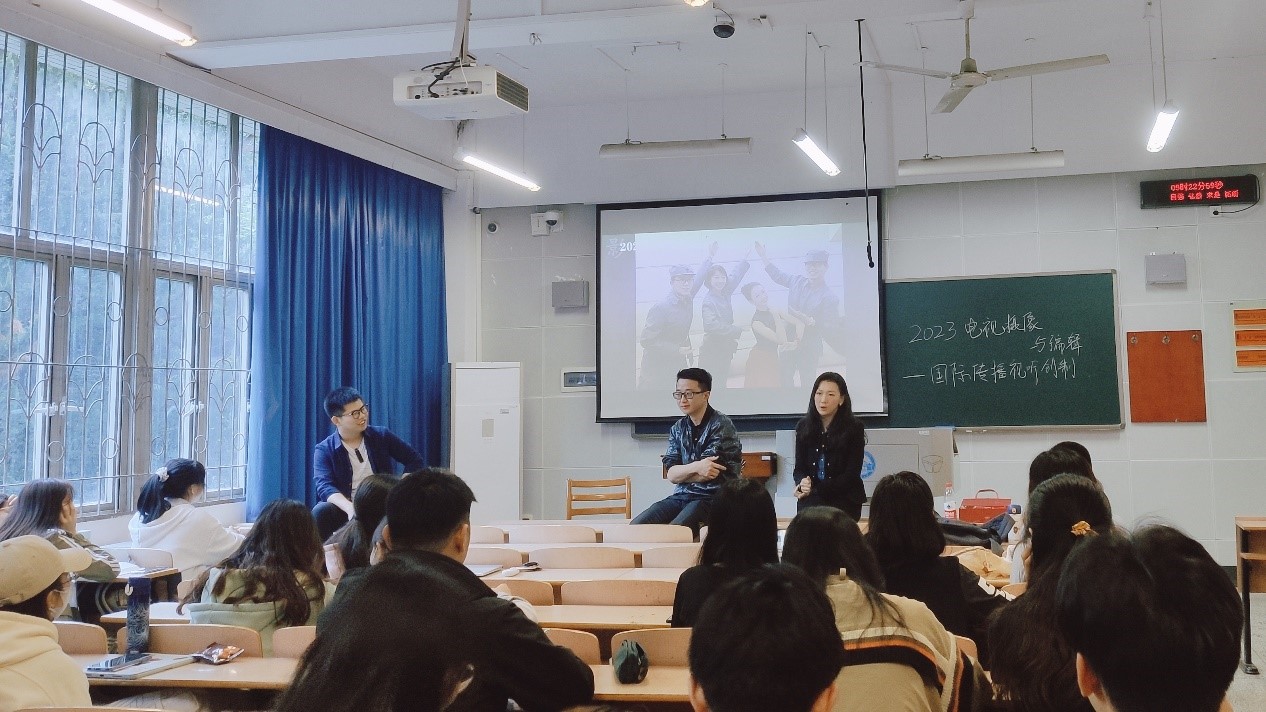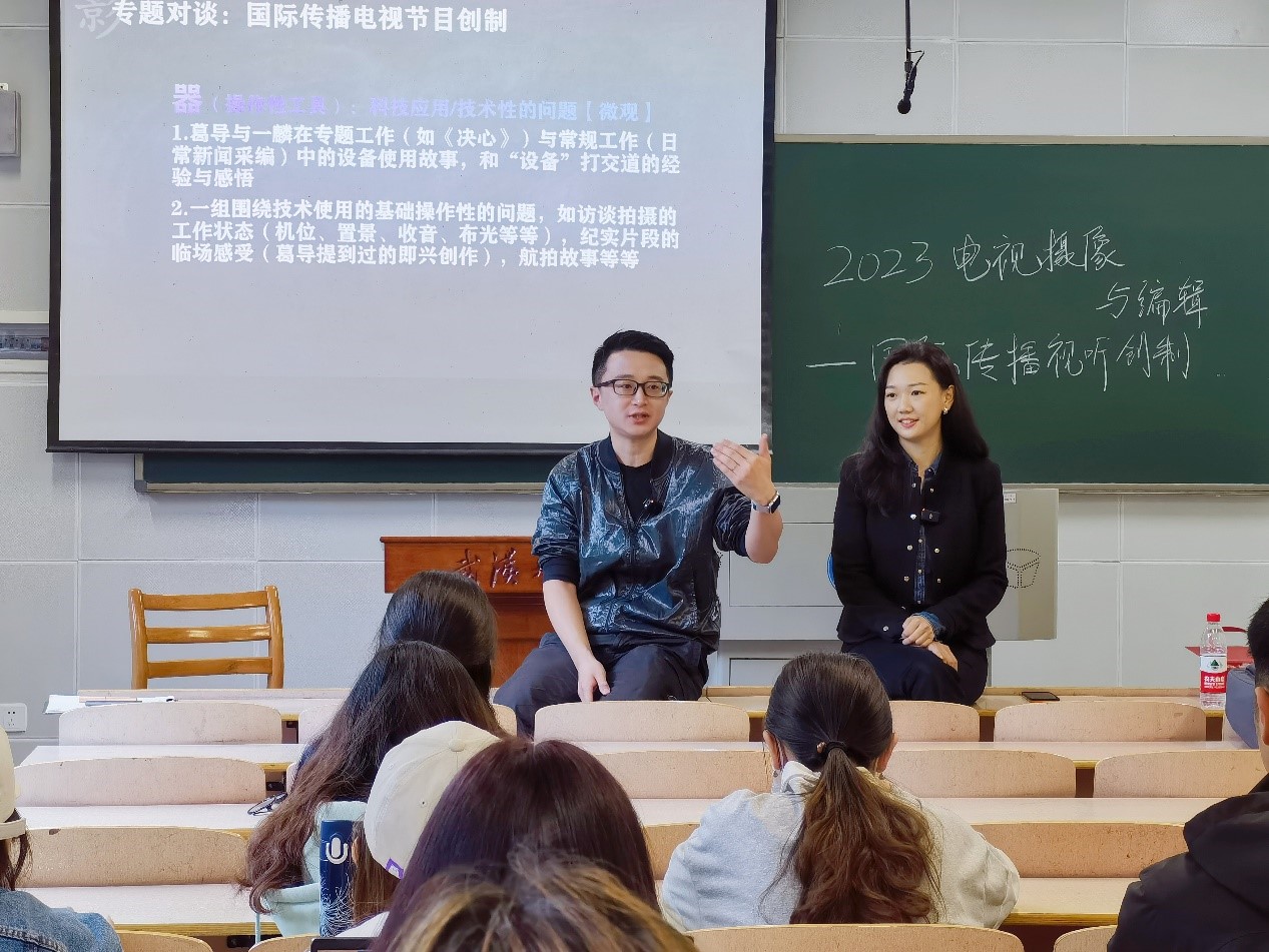 5月8日上午,教5楼102教室,行业专家走进太阳成集团tyc234cc本科生《电视摄像与编辑》课堂,开展了“国际传播视听节目创制——以《了不起的决心》为例”的对谈式专题讲座。