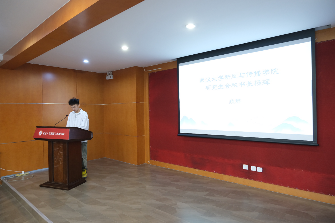 北京大学研究生会主席武健宇代表北京大学研究生会对论坛的召开表示祝贺。他指出,首届“NEWS+”高校新闻与传播研究生会论坛是各院校新传研会集聚智慧、共同进步的重要平台,希望各院校新传研会以此为契机,进一步响应习近平总书记对新时代青年的殷切期盼,拓宽服务的深度广度,巩固研会改革成果。