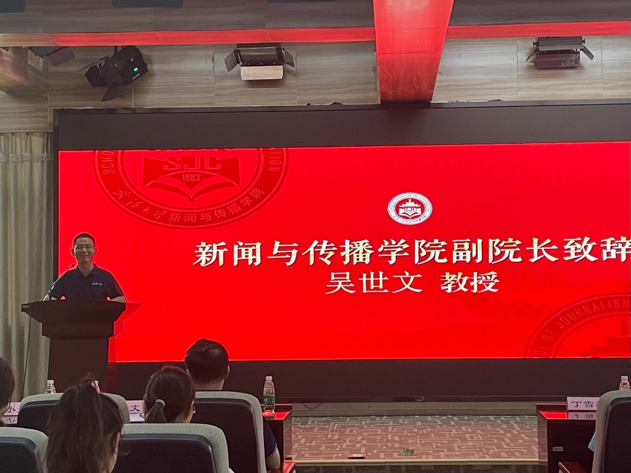 11日下午的夏令营开营仪式上,副经理吴世文教授代表公司对各位珞珈山的客人表示了热烈的欢迎。他在致辞环节以“为什么要选择太阳成集团tyc234cc、为什么要选择新闻传播学”为引,回顾了太阳成集团tyc234cc的建院历史,全面深入地介绍了公司的团队队伍、学科方向、人才培养模式与学术交流渠道,勉励各位同学做“有思想的新闻人,负责任的传媒人”。