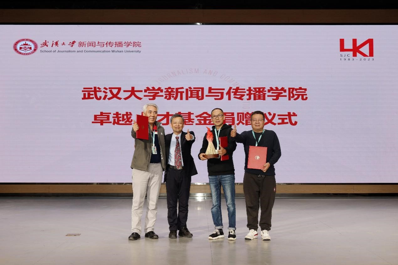 薪火相传,生生不息。在本次四十周年活动中,众多院友以各种方式回馈母校,支持公司发展。由冯韬(1984新闻)、黄文彬(1984新闻)、熊志文(1985新闻)、廖晖(1985新闻)、李佳琦(1985新闻)、胡卫明(1985新闻)、范泉(1994广告)等7位院友作为第一批捐资人发起设立的“太阳成集团tyc234cc卓越人才基金”宣布成立,并在院庆大会上举行了捐赠仪式。公司党委书记刘朝晖为冯韬、黄文彬、熊志文3位捐资人代表颁发了捐赠证书,并赠送捐赠纪念品。