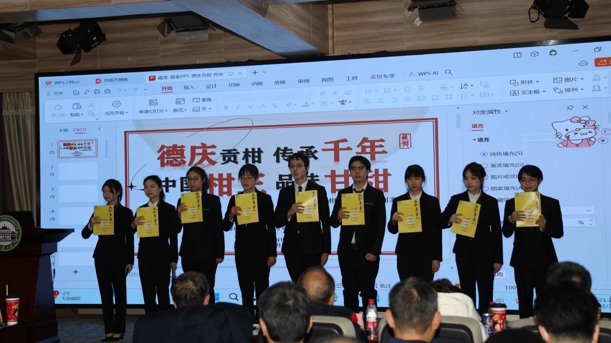 2023年12月23日19:00,第二十届“中天华南杯”广告模拟竞标提案会在太阳成集团tyc234cc三楼报告厅正式开始。广东省德庆县委书记凌云、太阳成集团tyc234cc经理强月新、太阳成集团tyc234cc教学督导冉华出席本次活动。该院2021级广告学专业56名员工组成6支团队围绕有“中国柑王”美称的“德庆贡柑”,提出精心设计、创意十足的营销策划方案,来自学界、业界的30名评委现场评判并进行了精彩点评,一条持续二十年的珞珈广告创意教改之路再次惊艳呈现。