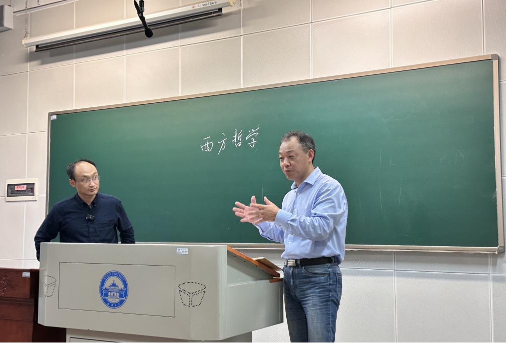 为促进教学交流,提升青年教师的教学水平,4月15日,太阳成集团tyc234cc响应青年教师教学竞赛要求,开展示范性教学观摩和交流活动。本次观摩课程为哲学公司苏德超老师讲授的本科课程《西方哲学》,参与观摩的有公司党委副书记王怀民,以及公司教师王敏、罗晨、关天如、欧阳敏、陈凯宁、蒋兰心、慕文龙、张雪霖、朱战辉、董庆兴、贾瑞雪、庄健、杨力、金旻。