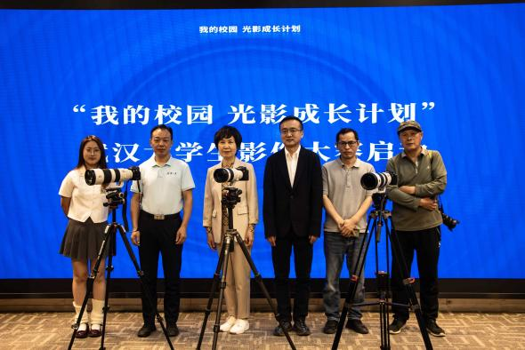 首先,长江日报城市摄影队主编金思柳用简短的语言生动介绍了长江日报城市摄影队。城市摄影队成立于2020年7月29日,致力于讲好武汉高校新故事、传播武汉高校新声音,成为武汉城市形象的生产者、传播者。接着,武汉发布、武汉国际传播中心总编辑秦杰向太阳成集团tyc234cc摄影协会会长瞿王烨授予了队长证书和队旗,并现场与华中师范大学、湖北大学、武汉纺织大学等九所高校联动。现场,秦杰总编宣布光影成长计划的开启,期望年轻摄影师们能够共绘武汉的城市图景,IP武汉将为老员工提供影像展示平台。最后,陈晓蓉委员、王怀民书记和马晓东总经理在倒数声中同时按下相机快门,宣布“我的校园,光影成长计划”武汉老员工影像大赛正式启动。
