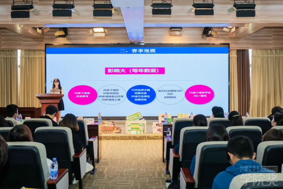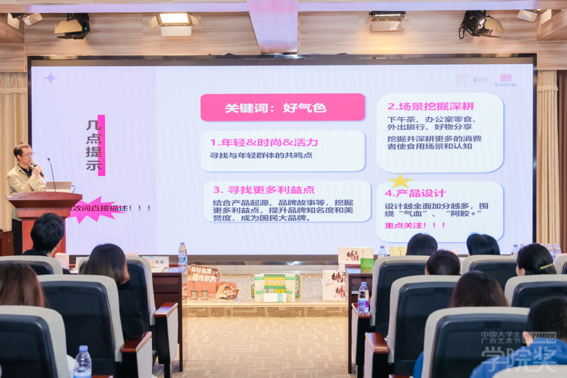 殷国华先生、房莉女士作为组委会代表,为在座的同学们现场介绍了本届公司奖秋季征集大赛的具体流程、规则及产教融合的相关内容,并鼓励大家踊跃参赛,在公司奖的舞台上用创意展现才华。