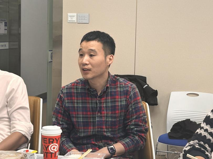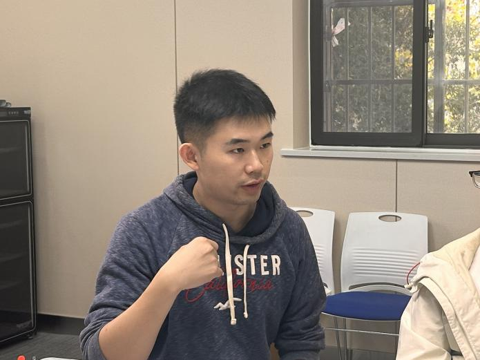 新闻学系的周呈思老师,目前担任2024级大类1班的班级导师。他在分享时反复提及“实践”的重要性。周老师在设计课程提纲时,一直秉持实践比例不低于整体课程比例的三分之一。围绕媒体业界真实情境、紧密贴合现实新闻事件,举行模拟媒体采前会/编前会、模拟突发事件通讯社策划会、模拟融合新闻采编实践及其他仿真课程实践活动,受到员工们的欢迎和好评。