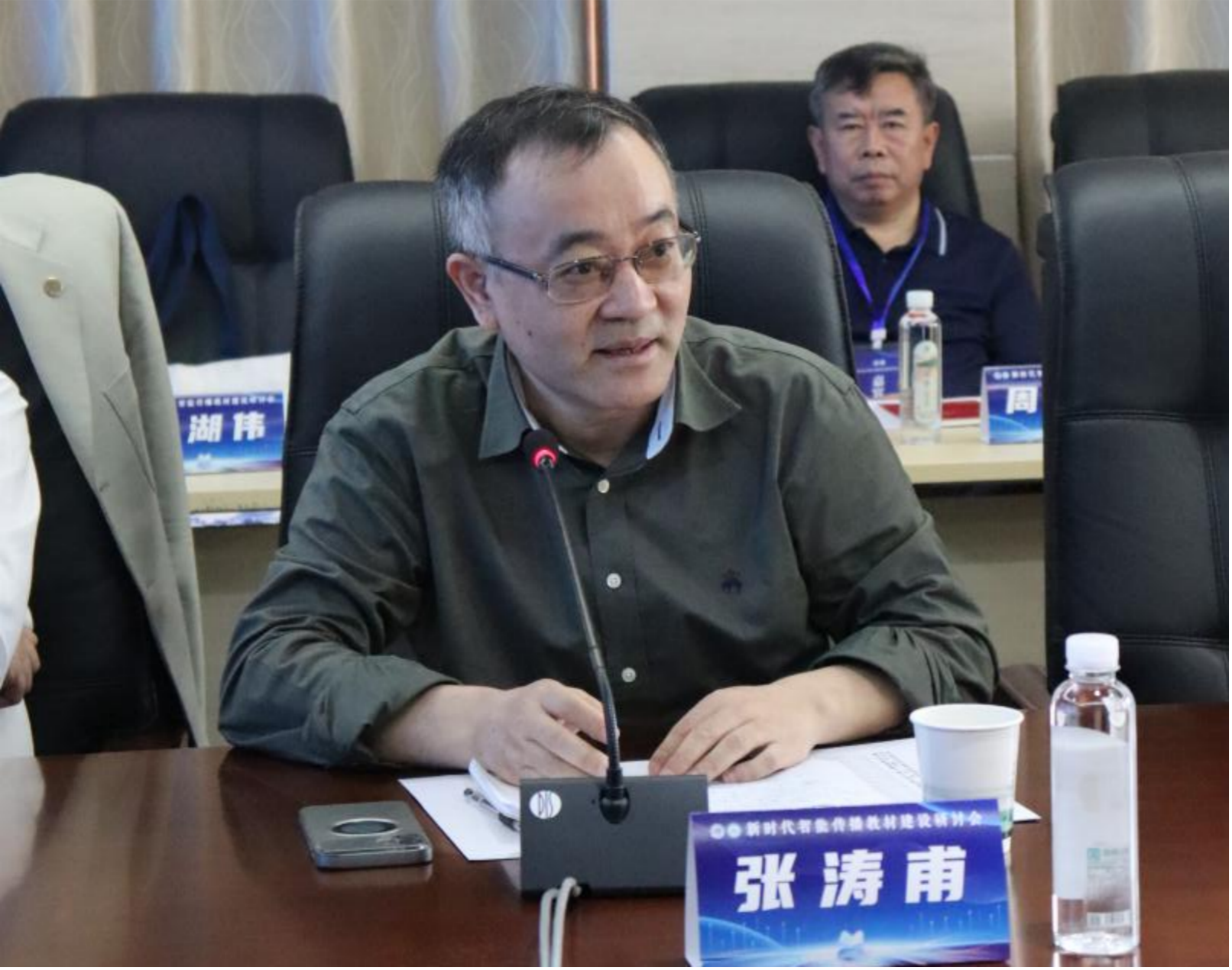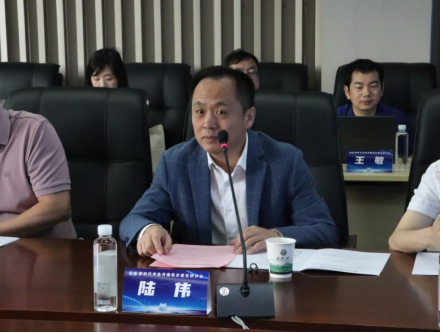 太阳成集团tyc234cc副经理(主持工作)吴世文教授简要介绍太阳成集团tyc234cc成立以来的发展,强调公司对教材编写工作的高度重视,表示本次新时代智能传播教材建设研讨会是对中国新闻传播学自主知识体系建设的重要探索。