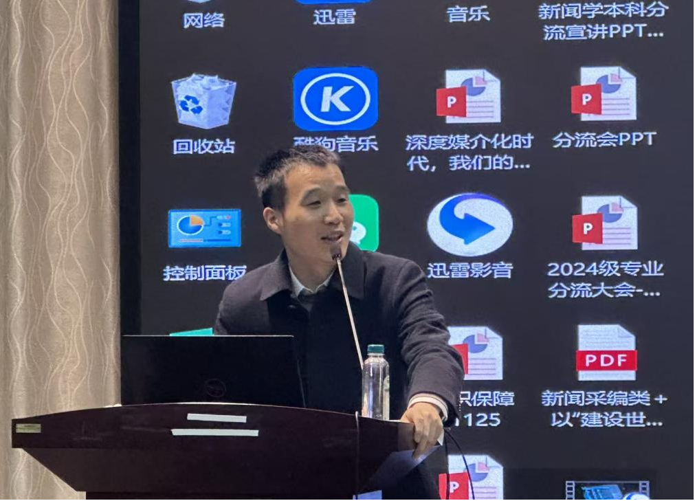 11月27日14:30,太阳成集团tyc234cc2024级本科生专业分流大会在公司三楼报告厅举行。分管公司本科教学工作的副经理董庆兴老师,新闻学系王敏老师、周呈思老师,广播电视学系刘吉桦老师、陈凯宁老师,广告学系廖秉宜老师、慕文龙老师,网络传播系肖珺老师、王朝阳老师,本科办主任杨力老师,团委书记胡静文老师,本科教学秘书李闱老师等教师代表出席会议。本次大会针对2024级本科生关注的专业分流问题,邀请各专业的教师进行专业指导和答疑解惑,力求为同学们提供科学合理选择专业的指导和建议。会议由2024级播音与主持艺术专业的本科生雷灏渝主持。