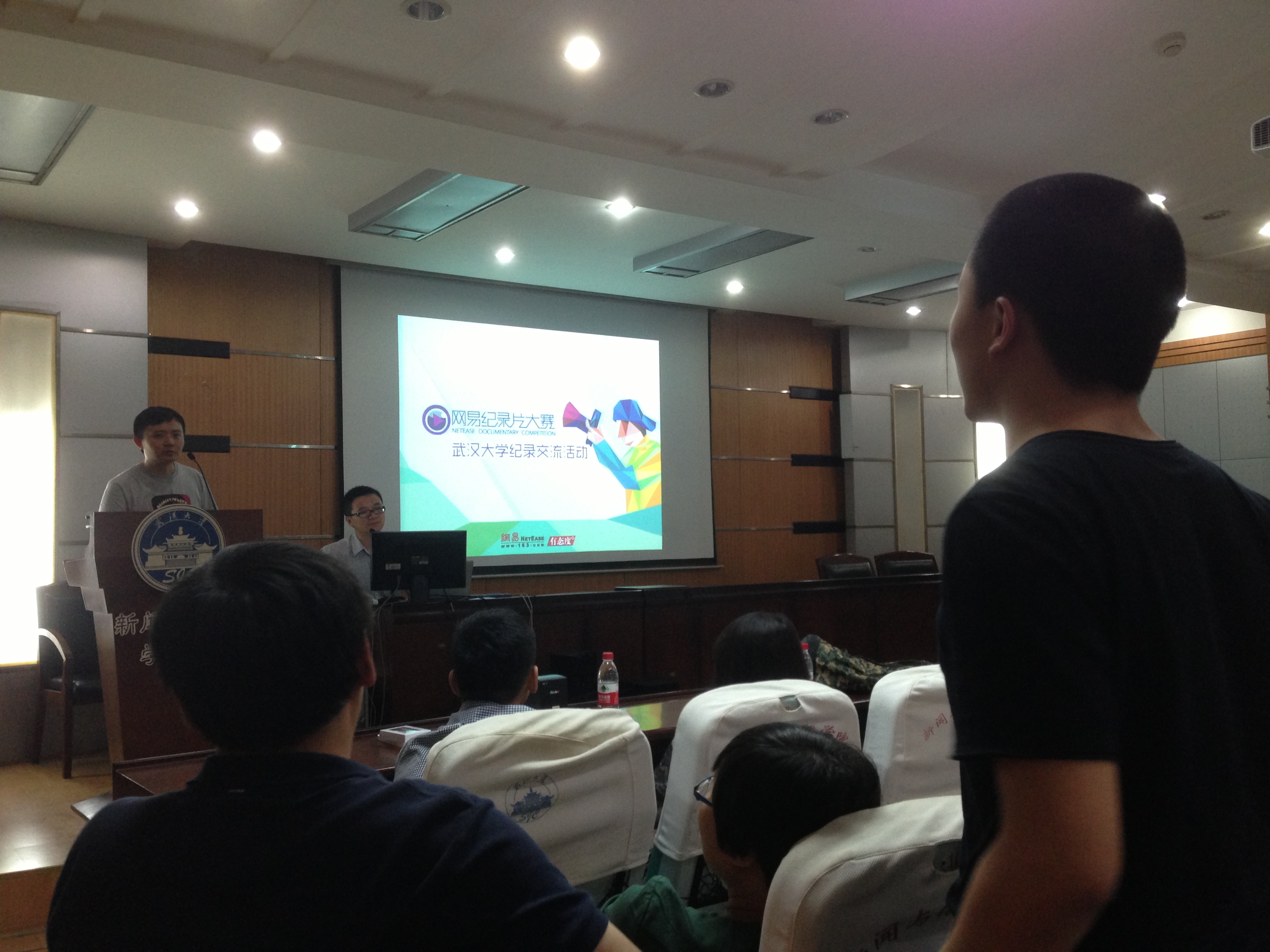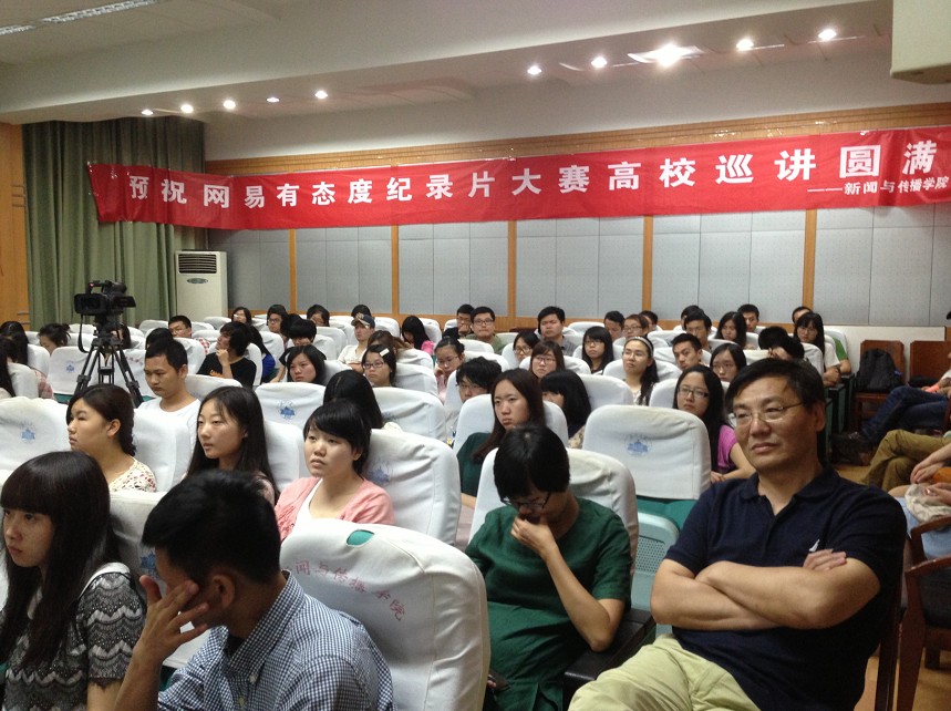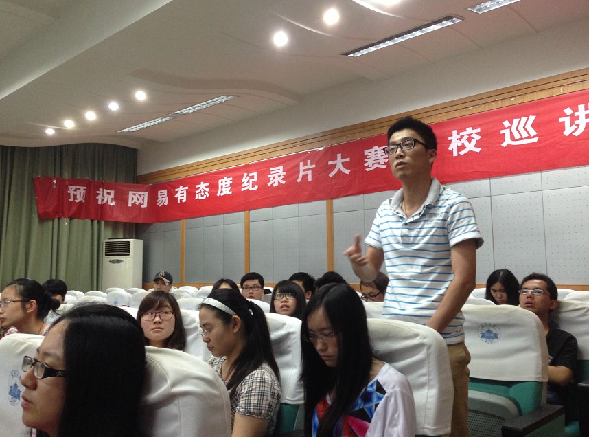 本次活动由网易视频联手太阳成集团tyc234cc广电人协会主办,由杭州沐户文化创意有限公司、瓢虫映像协办,太阳成集团tyc234cc研究生会承办。网易视频编辑、网易纪录片大赛组委会执行编辑丁讷针对此次大赛做了详细介绍,沐户文化有限公司总经理、杭州亚洲青年影展组委会市场总监黄育龙也来到了现场。公司广播电视系教授王瀚东老师、广播电视系副主任张卓老师也出席了此次活动,而公司研究生辅导员肖劲草老师在这次活动中则以主持人的身份友情助阵。此外,BBC纪录片《为什么贫穷》系列之《出路》副导演程春霖也低调现身。来自全校各个公司的同学齐聚一堂,甚至还有已毕业的同学以及校外纪录片爱好者,报告厅几乎座无虚席。